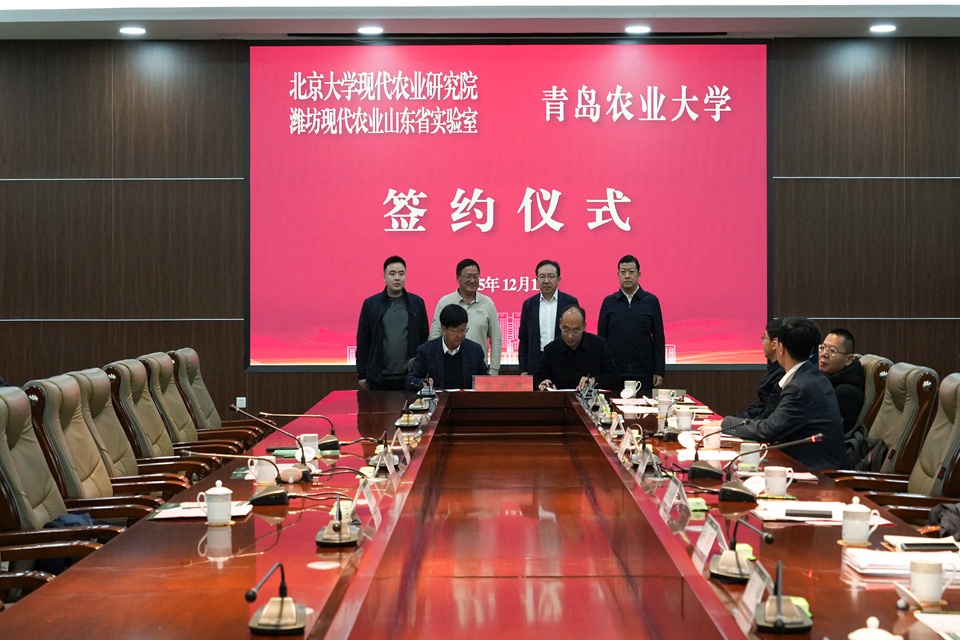 12月19日,青岛农业大学与北京大学现代农业研究院、潍坊现代农业山东省实验室战略合作签约仪式在校学术会馆会议厅举行。校党委副书记、校长赵金山,副校长孟晓军,北京大学现代农业研究院院长、潍坊现代农业山东省实验室主任邓兴旺院士,副院长、副主任张兴平研究员、卞建新副研究员出席签约仪式。仪式由校党委委员、副校长王永健主持。